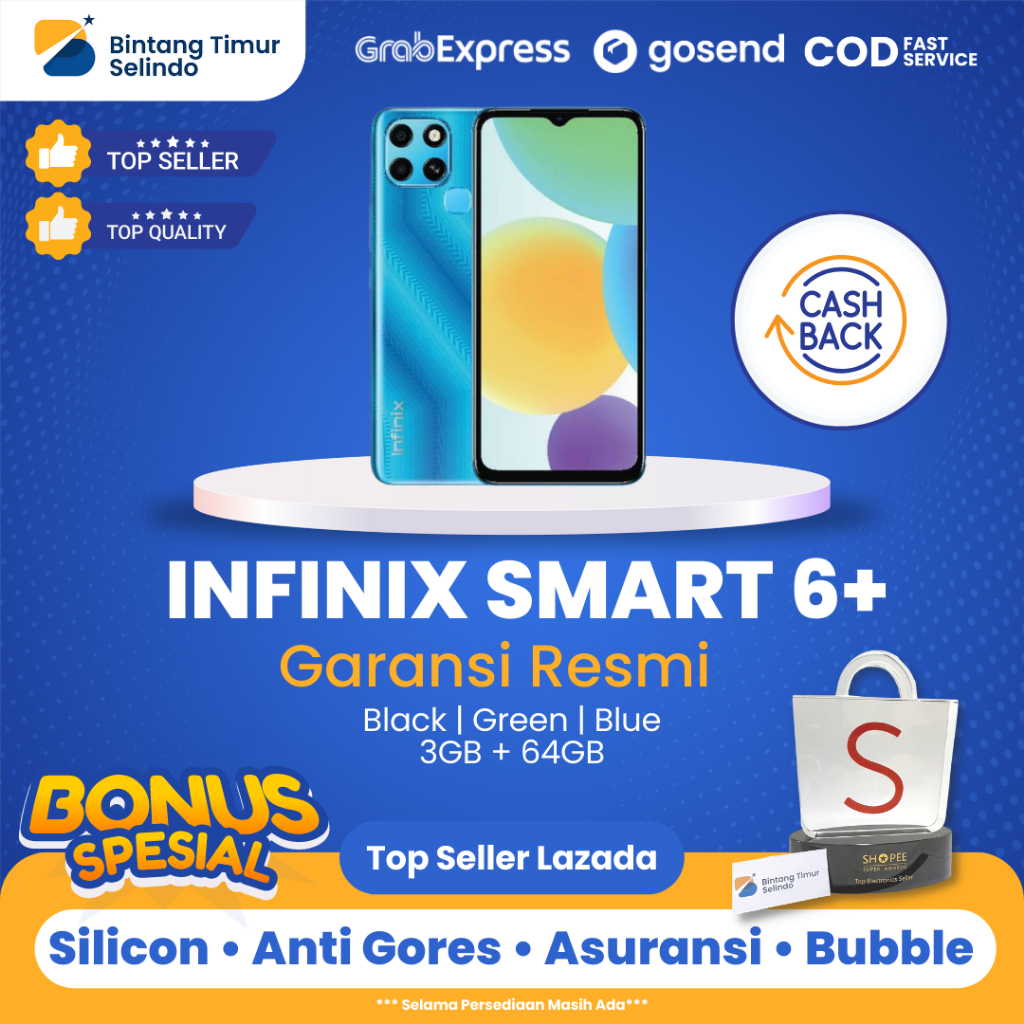 Infinix Smart 6+ 3GB+64GB [Expansi Ram 3GB+3GB=6GB/64GB] Garansi Resmi 1 Tahun dijual oleh toko Bintang Timur Selindo yang berlokasi di KOTA JAKARTA BARAT.