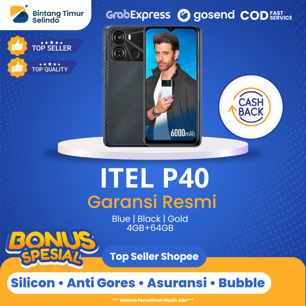 Nama produknya yaitu Itel P40 4GB+64GB Garansi Resmi. waktu postingan ini diupload sudah terjual 92 kali. Harga yang ditawarkan pun terjangkau, produk yang punya rating 4.9 dari 5 bintang ini ditawarkan dengan harga mulai 1045000 .