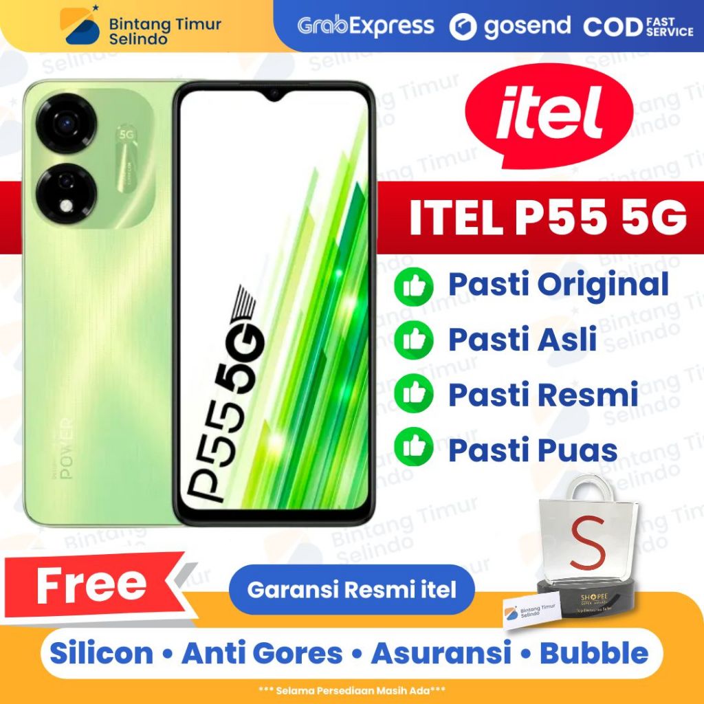 ITEL P55 5G 6/128 GB Garansi Resmi ITEL Indonesia 1 Tahun dijual oleh toko Bintang Timur Selindo yang berlokasi di KOTA JAKARTA BARAT.