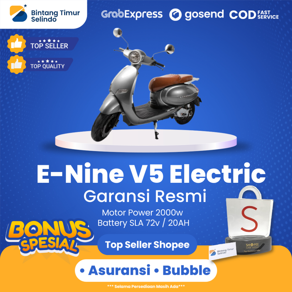 produknya adalah Motor Listrik E-Nine V5 Electric Motorcycle. Saat tulisan ini dipublish sudah terjual 0 pcs. Harga yang ditawarkan pun bagus, produk dengan rating 0 dari 5 bintang ini ditawarkan dengan harga mulai 17900000 rupiah.