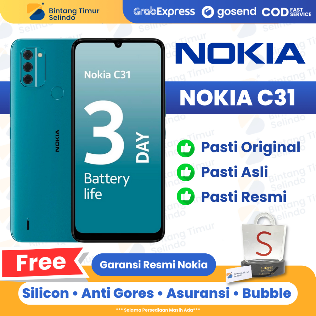 Nokia C31 4GB+64GB Garansi Resmi Nokia 1 Tahun dijual oleh toko Bintang Timur Selindo dengan lokasi KOTA JAKARTA BARAT.
