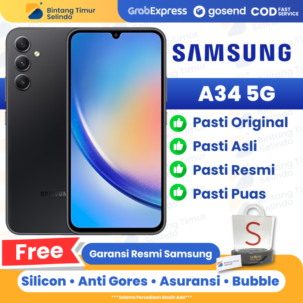Samsung Galaxy A34 [5G] 6GB+128GB 8GB+128GB 8GB+256GB Garansi Resmi Samsung 1 Tahun dijual oleh toko Bintang Timur Selindo dengan lokasi KOTA JAKARTA BARAT.